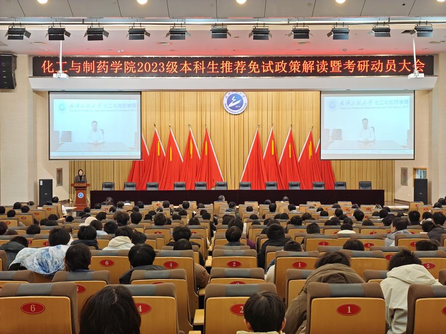 本网讯(通讯员 黄远鑫)为帮助2023级本科生明确学业规划,逐梦学术殿堂,12月23日下午,化工与制药学院在四教多功能报告厅召开2023级本科生推免政策解读暨考研动员大会,副院长余响林、教师代表吕仁亮、何禄英,以及年级辅导员等参加。