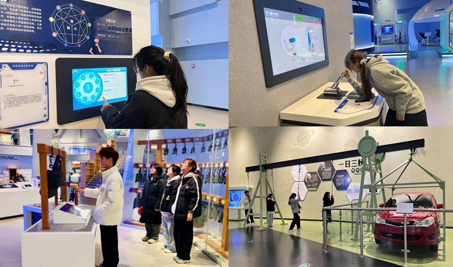 在科技馆内,服务队带领学生玩转多个特色展项。在马斯洛需求理论智慧答题区,同学们通过回答“需求自查表”对照自身成长目标,从心理学视角读懂自我、接纳自我;在人机掰手腕展项区,学生们在与机械臂的“力量对决”中体会成败,服务队借机讲解“自我效能感”概念,传授提升自信心的小技巧;在曾侯钟冥想体验区,悠远的古乐声里,学生们跟着指导学习正念冥想,在深呼吸中舒缓焦虑,收获内心的平静;而在杠杆拉汽车展项前,大家从各自为战到分工协作,在成功拉动汽车的瞬间,直观体会到“1+1>2”的团队协作力量,也领悟了沟通与信任在人际交往中的重要意义。