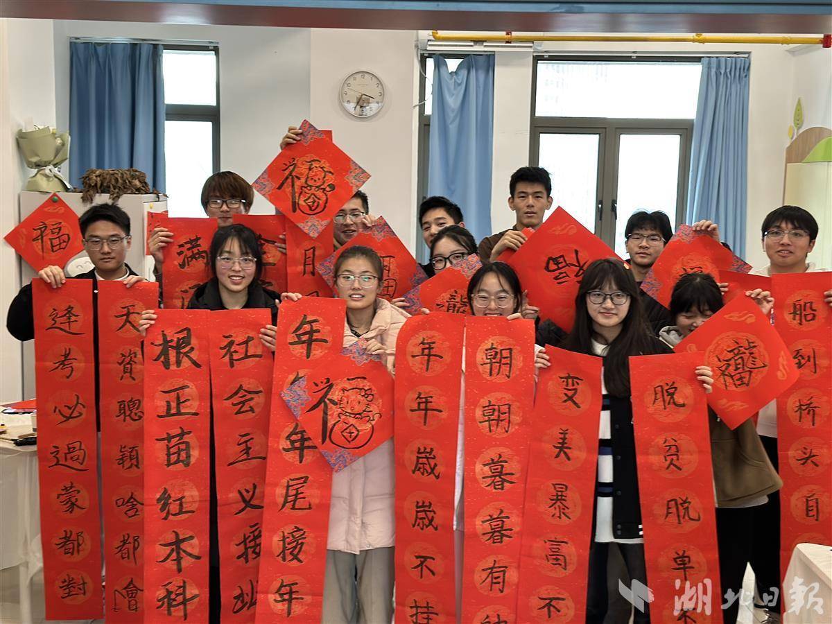 为继承和弘扬中华优秀传统文化,营造欢乐祥和的新春氛围,近日,武汉工程大学化工与制药学院在学校“一站式”学生社区、森林小镇社区开展“笔酣墨饱庆佳节‘宿’写春联送万福”活动。