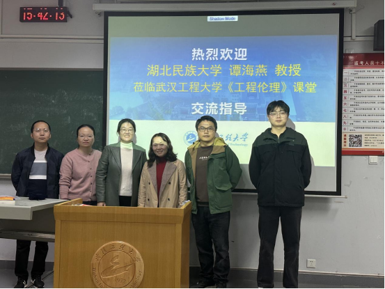 本网讯(通讯员 熊芸 高慧)为深化工程教育改革,加强《工程伦理》课程教学建设,共享优质教学资源,11月5日,湖北民族大学谭海燕老师专程赴武汉工程大学,走进课堂观摩我院熊芸老师主讲的《工程伦理》课堂教学,并与工程伦理课程组进行了深入的研讨交流。化工与制药学院教师杨小俊、吴晓宇、黄玲和肖健共同参与了本次交流。本次活动不单是一次教学观摩,更是学校本科教育教学督导组自2024年启动“示范课堂”建设计划以来,推动“示范课堂走出校门”、主动发挥辐射引领作用的生动实践。