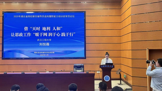 其中,心理健康工作专项辅导员刘悦薇重点分享了参加“2025年湖北省高校新任辅导员适岗履职能力培训班”的学习经历与感悟。她围绕培训中关于大学生心理危机识别与干预、积极心理培育、家校协同育人等专题内容,结合学院学生心理工作实际情况,交流了将所学转化为实践运用的思路与举措,为提升学院心理健康教育工作的科学性和有效性提供了有益借鉴。