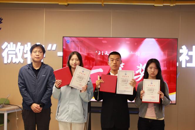 杨海波、徐凯、赵春阳等分别为获奖学生代表颁发证书,肯定大家在坚持中收获成长、以自律点亮青春。本次活动共评选出一等奖10名、二等奖16名、三等奖23名、优秀奖43名。